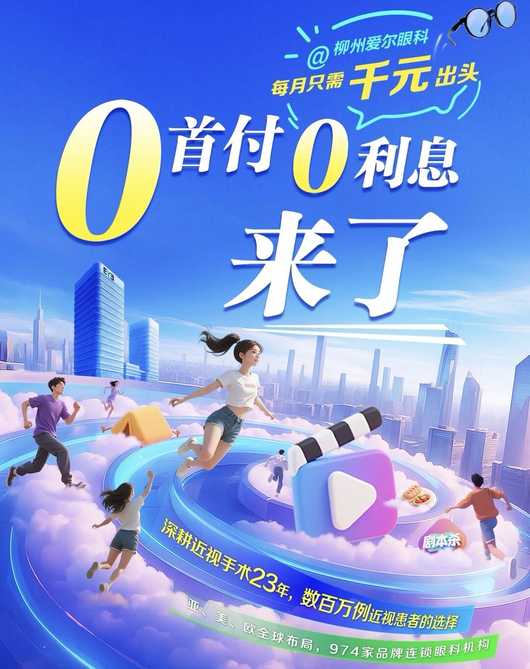 柳州爱尔眼科开通专属绿色通道,推出近视手术分期方案——每月只需千元出头,更可实现“0首付0利息”摘镜。 柳州爱尔联合银行推出专属绿色通道,在本院做近视手术可享受“先手术,后付款”专属福利: 1.12期免息分期:可享12期医院贴息,0手续费、0利息。 2. 每月只需千元出头 3. 全程一对一指导操作:从申请到还款,银行人员上门面对面指导操作,服务满分,爱心满分,无需复杂流程,手术当天即可启用分期。